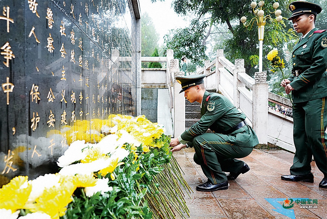武警贵州总队黔西南支队官兵到驻地烈士陵园祭奠英烈。罗 康 摄