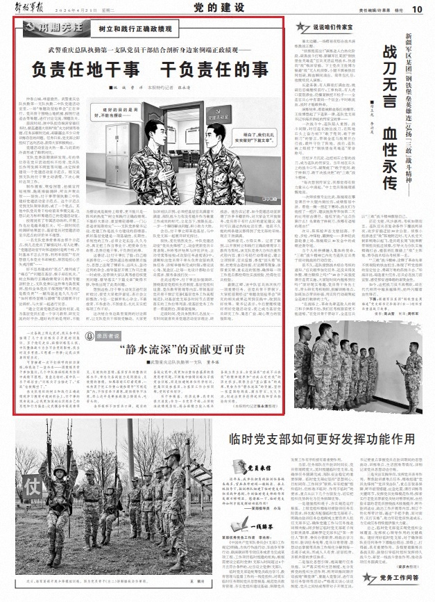 “建立完善党建活动室的初衷,是为基层党员打造一个学习教育、研究交流的好平台,建好的目的是用好,不能当摆设或是做给上级看,更不能只是一阵风的热度”“树立和践行正确政绩观,不能好大喜功、重显绩轻潜绩,一门心思追求短期效应”……支队党委梁书记说,党建工作是战斗力建设的倍增器,抓好基层党建是一项基础性、长期性、系统性的工作,必须立足长远、久久为功,真正把工作当事业干、把使命当生命看,负责任地干事,干负责任的事。