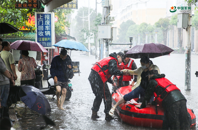 武警官兵转移受灾群众。王超智 摄