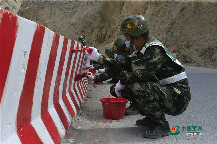晴天一身土,雨天一身泥。进入9月后,降雨量稍微减少,官兵们兵分三路作业,机械组清理落石、塌方,两个人工组分别清理边沟和粉刷示警桩,几乎每天都是早出晚归,争分夺秒养路护路。19日,现场组织指挥的中队长谢小龙带领官兵一丝不苟地粉刷路肩上的防撞墩,他向笔者介绍,这些标志醒目了,就可以有效提醒司乘人员注意驾驶,行车就有了安全的指向标。
