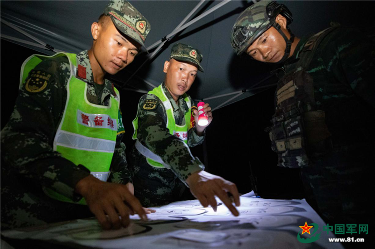 夜间射击现场,指挥员在组织准备考核设施。余海洋摄