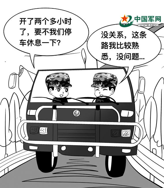 前不久,小赵受领任务驾车给哨所运送给养,此次任务路程较远且路况不好,行车时间长达4个多小时。根据相关规定,驾驶员应当注意休息,严禁疲劳驾驶。一般情况下,连续驾驶超过2小时至少停车休息20分钟。小赵认为自己对路况熟悉,时间又比较急,行车途中就没有按照规定停车休息调整。回到营区后,团相关部门检查行车记录仪发现了这一问题,对小赵和带车干部提出严肃批评。