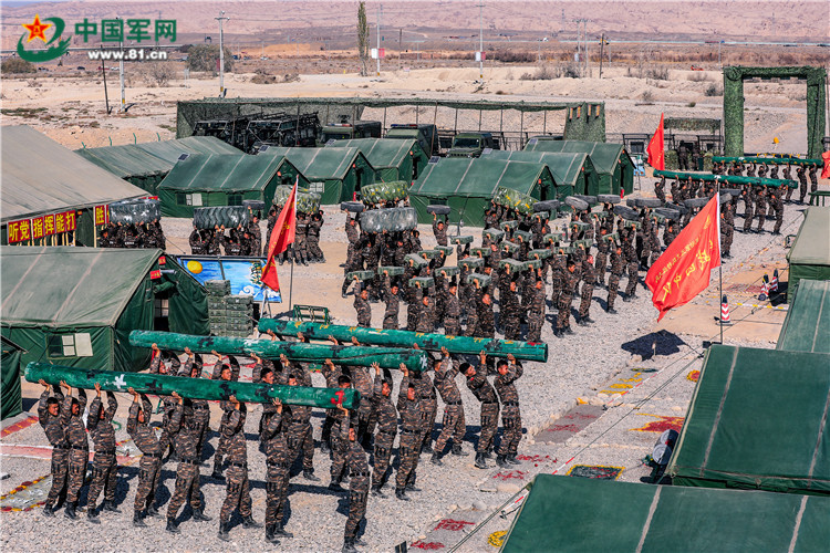 浓烟之中,一队迷彩身影穿行而来。一顶顶头盔之下,是一张张晒得黑到发红的脸,脸上的油彩在汗水中折射出奇异的色彩。脚步声越来越近,声音充满力量,回荡在天山中,好像一种有节奏的打击乐。