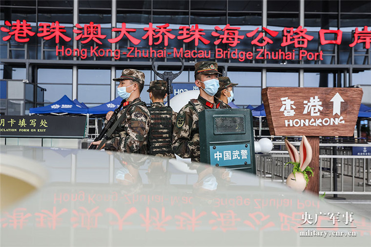 武警广东总队执勤官兵在横琴口岸执勤。
