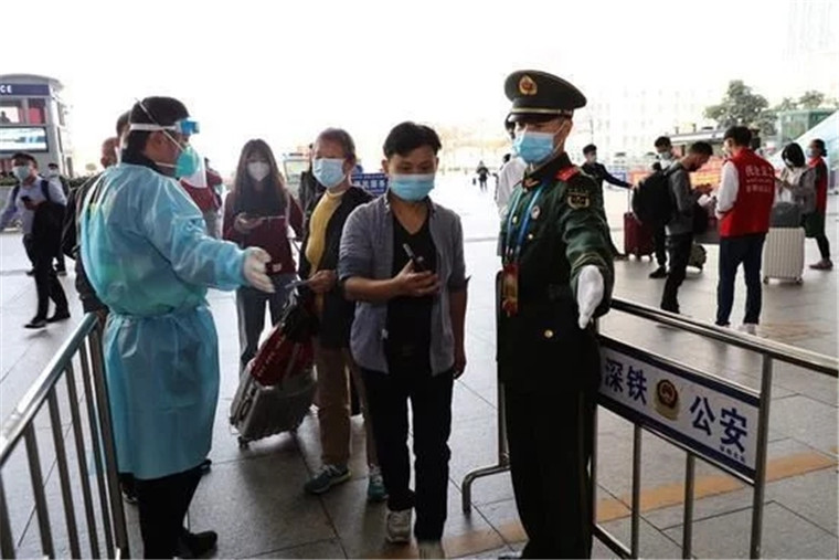 武警深圳支队官兵引导乘客有序进站。