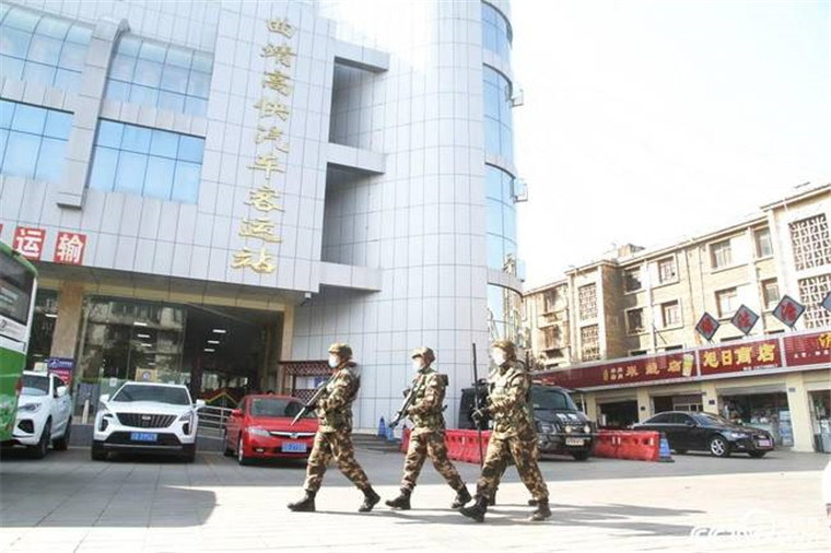武警曲靖支队春运执勤官兵联合公安实行武装联勤巡逻,每天不间断进行执勤、备勤。