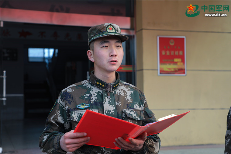 指导员宋冠毅宣读授装命令。钱彦奇摄
