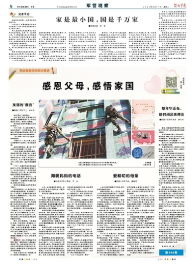军人对家人的爱深厚而低调,虽不能常伴左右却珍惜每分每秒,将每个团圆时刻珍藏心间。从他们对家人歉疚不舍的表情中,从他们“既许国,怎许卿”的无奈两难中,记者读懂了什么叫“感恩”,什么叫“家国”。