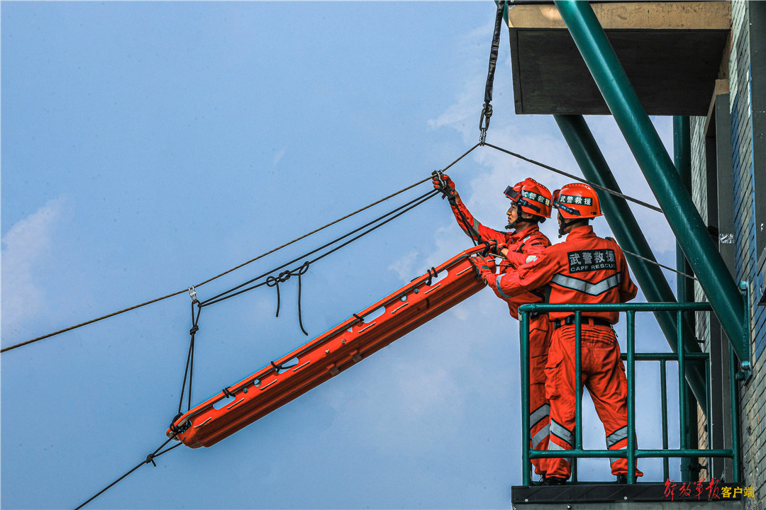 救援分队官兵采取斜向救援解救“被困群众”。
