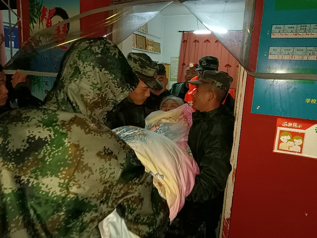 ↑10月4日,武警山西总队官兵正在太原市晋源区小站营社区转移群众。李聚祥 摄
