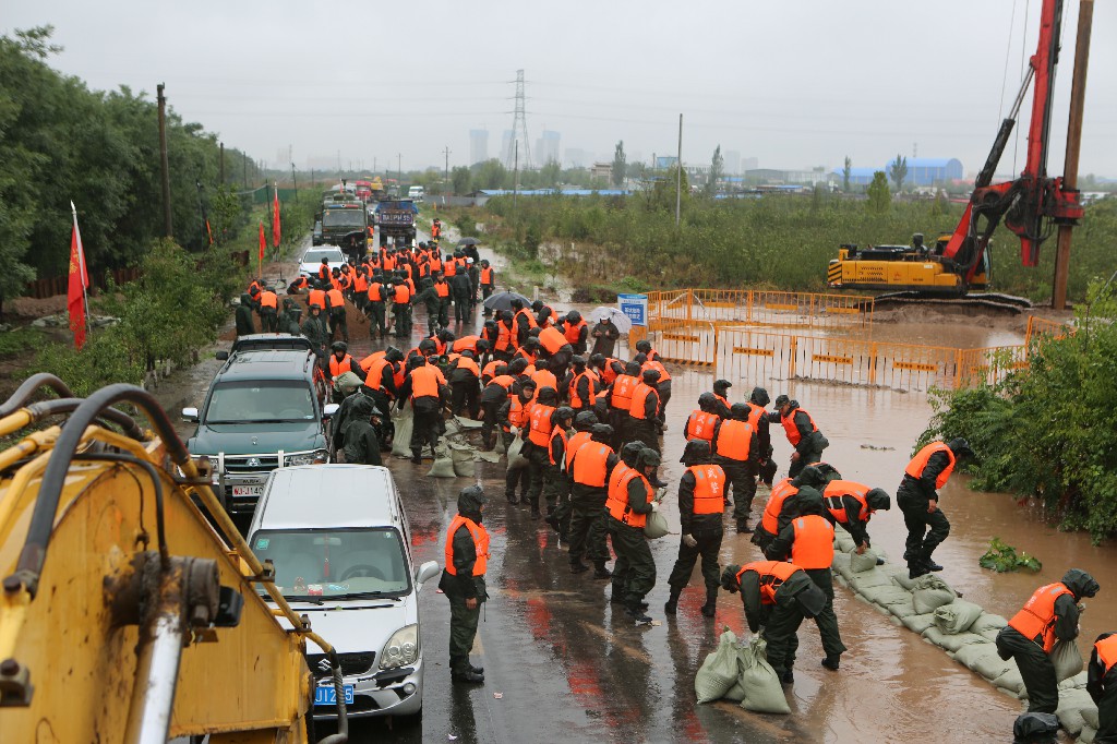 灾情发生后,武警第一机动总队紧急出动200余名官兵,携带600余件救援装备赶赴灾区展开救援,修筑防汛堤坝。