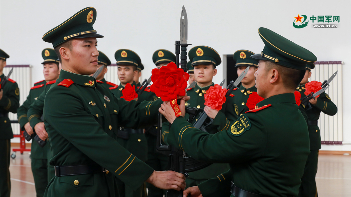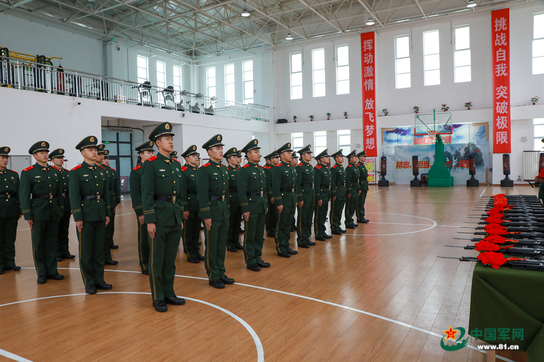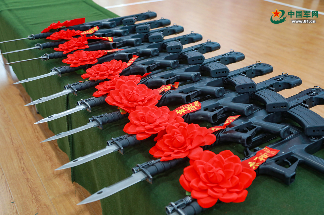 新战士接过钢枪。赵俊杰 摄