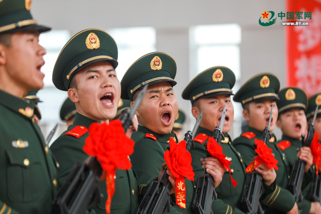 1月13日,武警新疆总队克拉玛依支队各基层单位举行新兵授枪仪式,百余名新战士迎来军旅生涯的专属“成人礼”。全体官兵士气高昂,授枪仪式在雄壮的《中国人民解放军军歌》声中拉开帷幕。