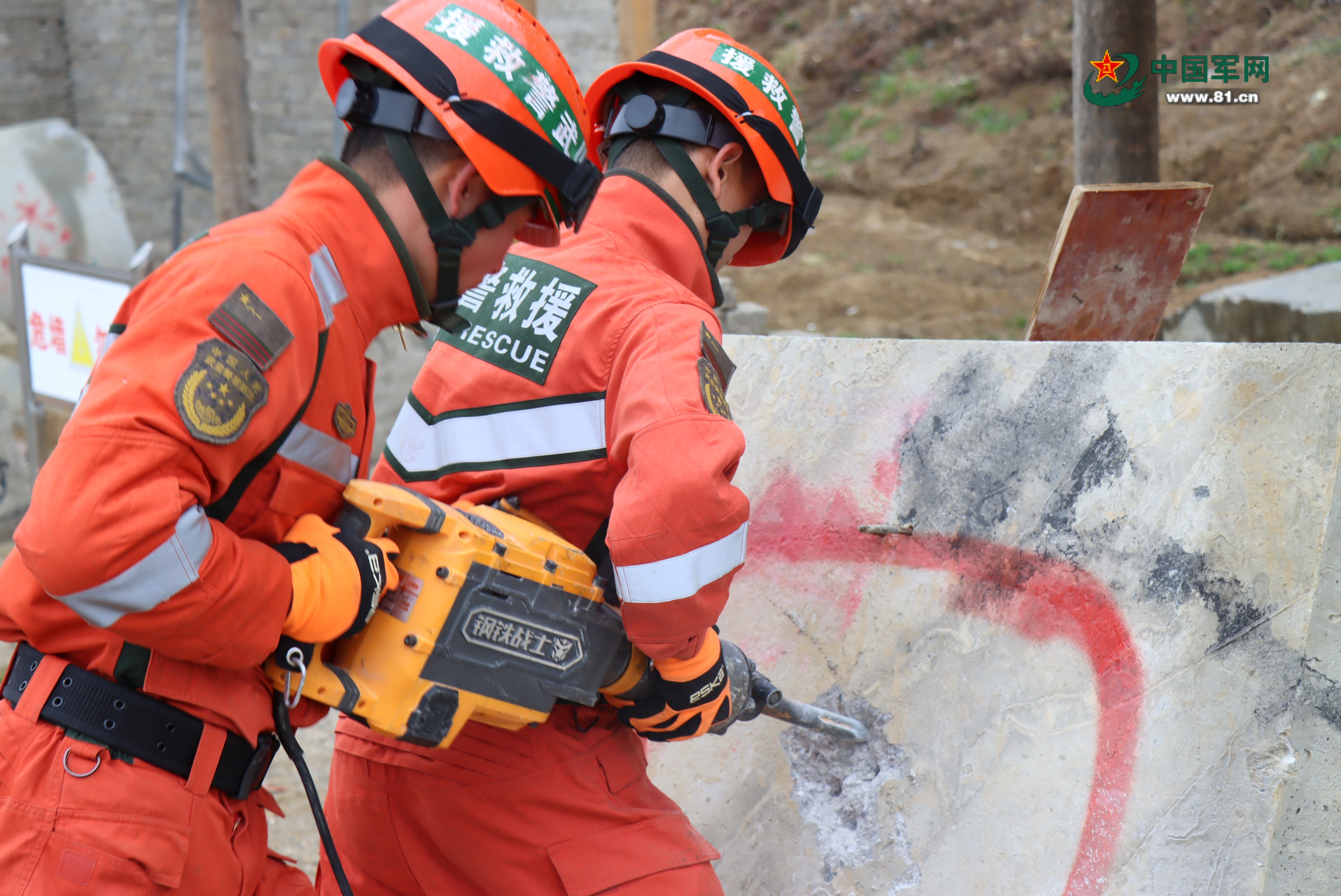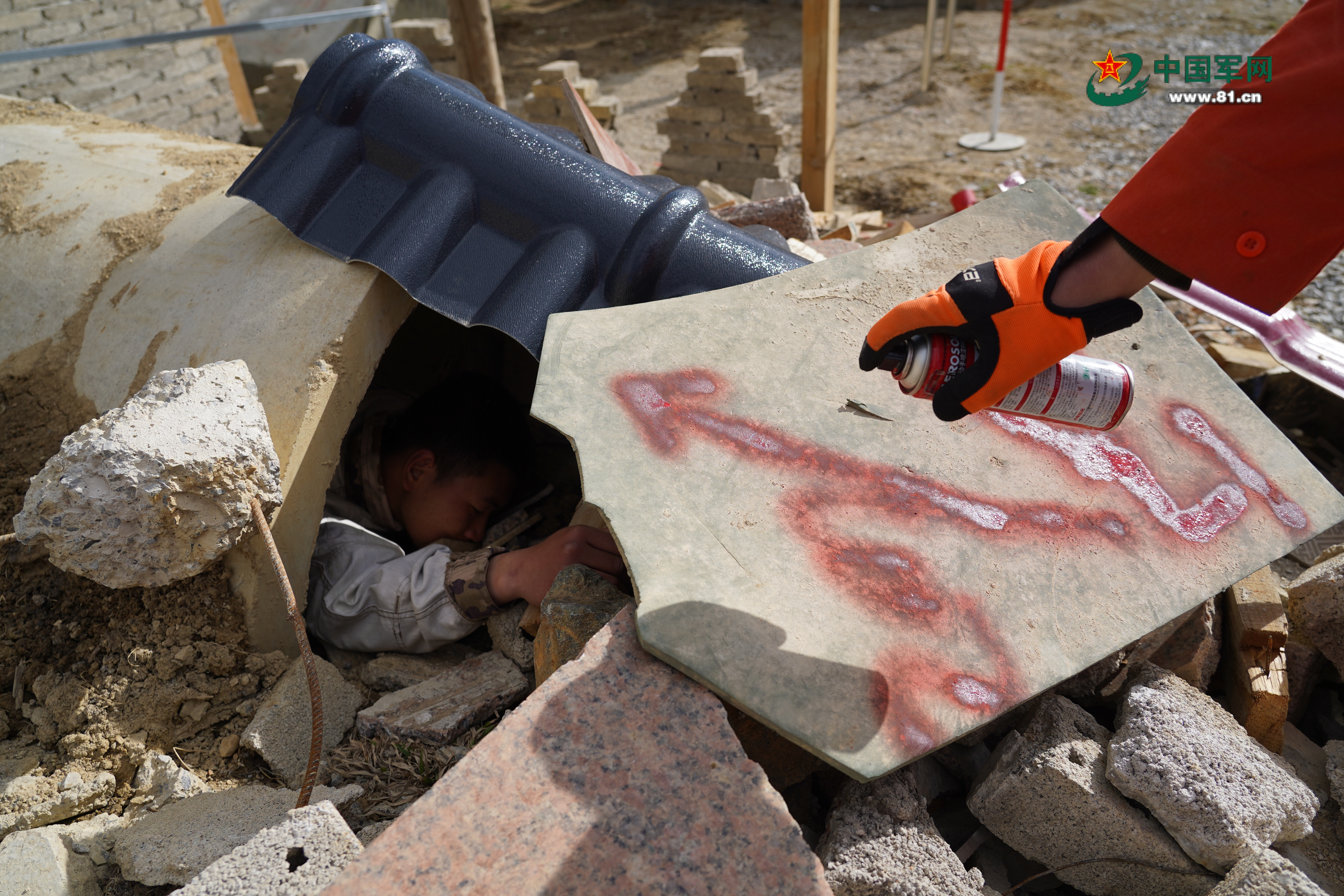 官兵对幸存者位置进行标记。张泰笙 摄
