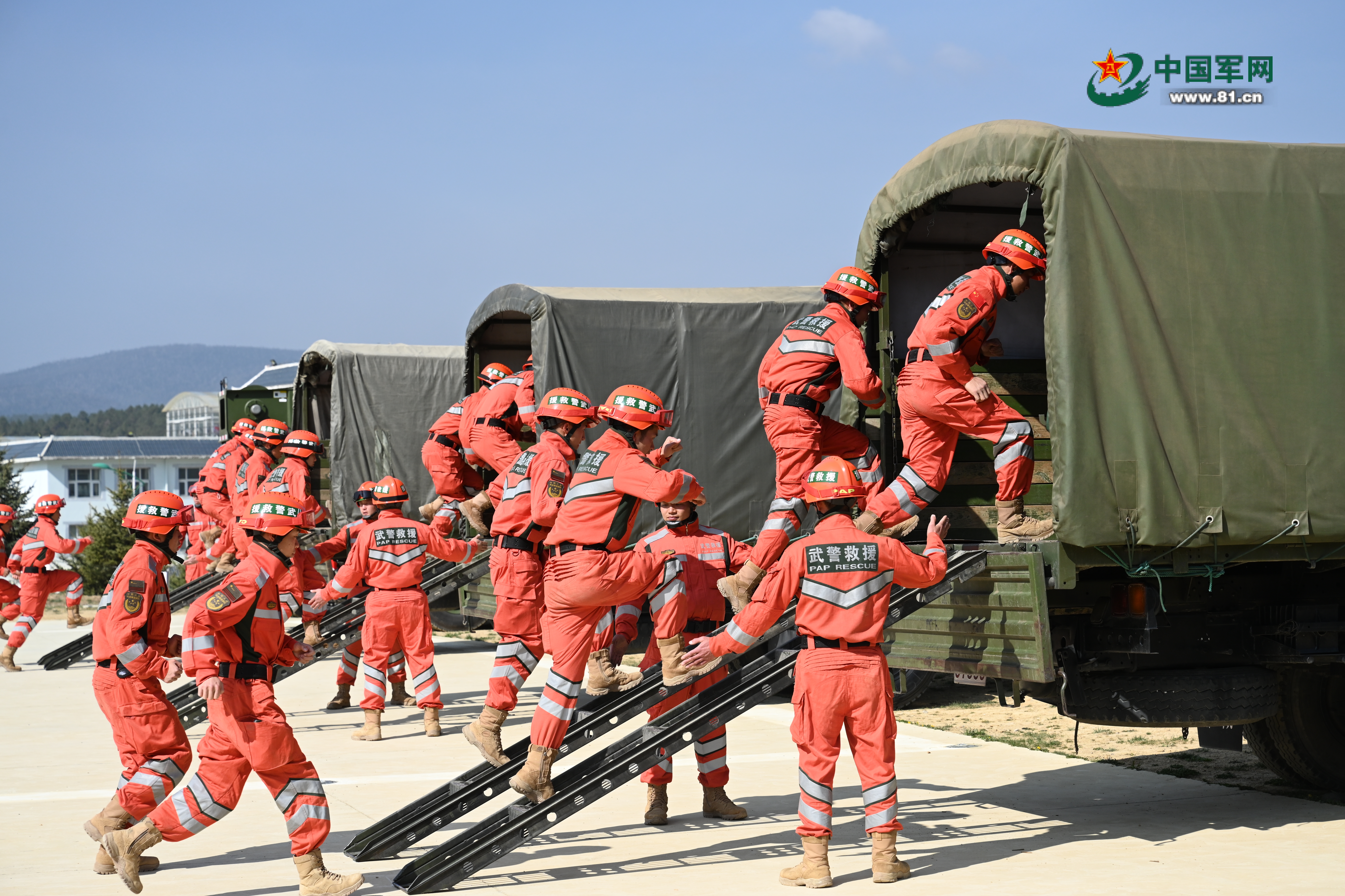 官兵快速登车。张泰笙 摄