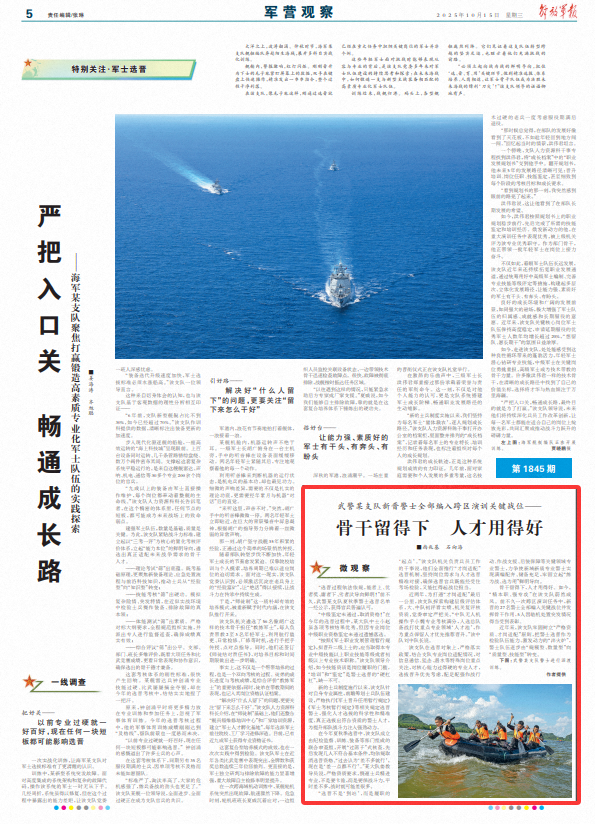 “选晋不是‘到站’,而是履职的‘起点’。”该支队机关负责兵员工作的干事说,他们全面推行“才岗适配”选晋机制,坚持岗位需求与人才选晋精准对接,确保选晋官兵既能经受住考场检验,又能扛得起战位担当。