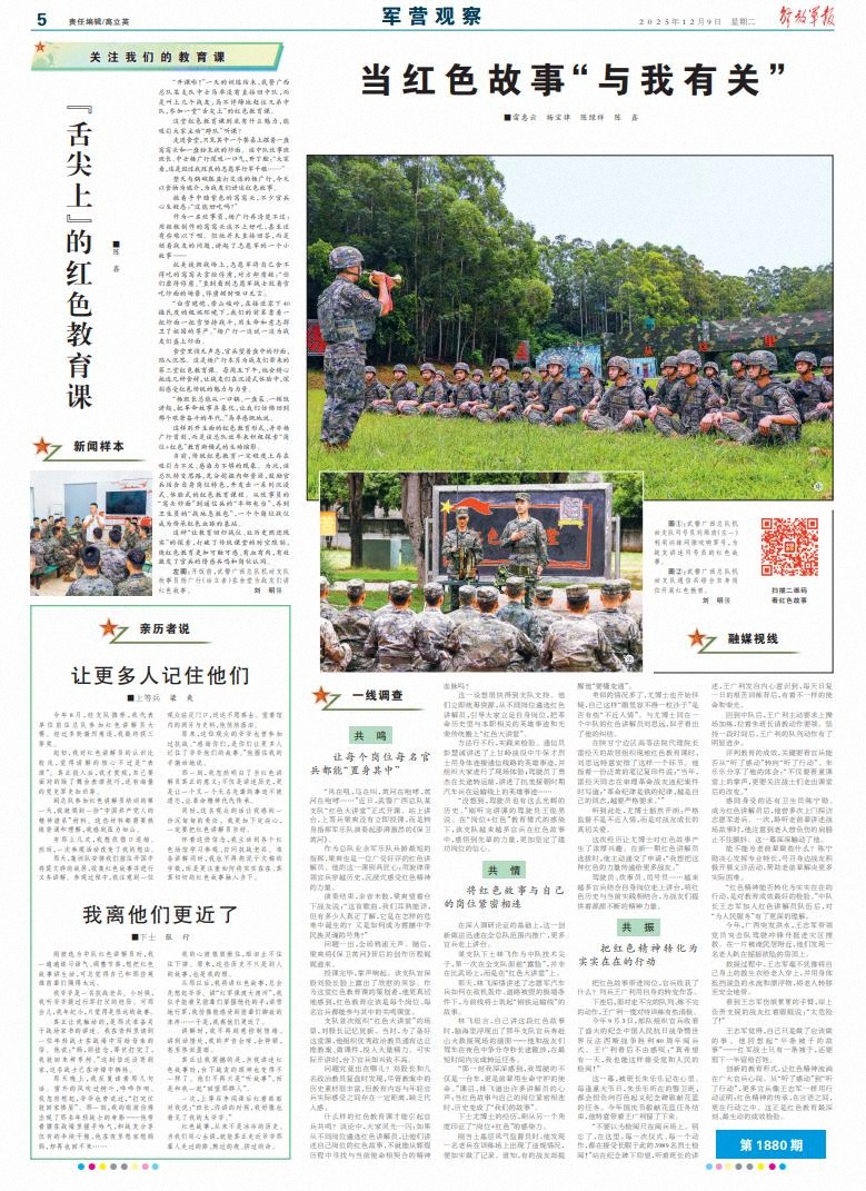 真正让我震撼的是,当我讲述红色故事时,台下战友的眼神也变得不一样了。他们不再只是“听故事”,而是和我一起“回望那群人”。