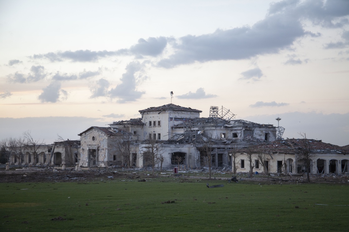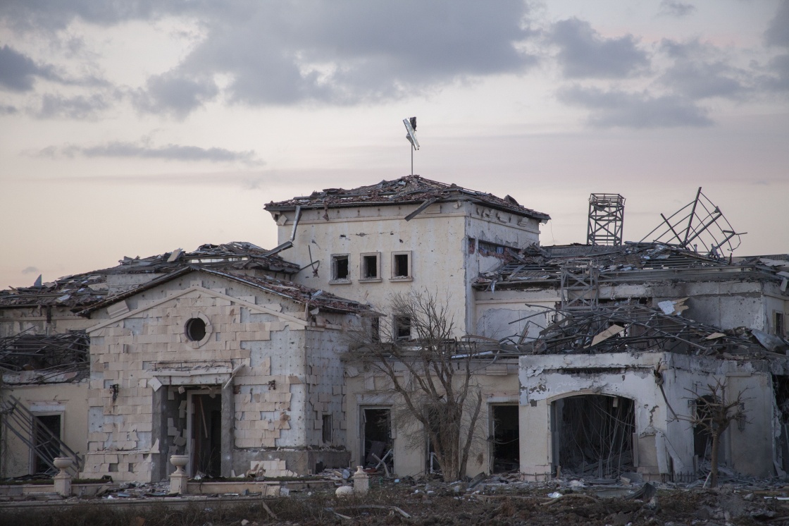 3月13日,在伊拉克库尔德自治区首府埃尔比勒,美国驻埃尔比勒领馆附近的建筑在导弹袭击中受损。新华社发(达尔沙德摄)