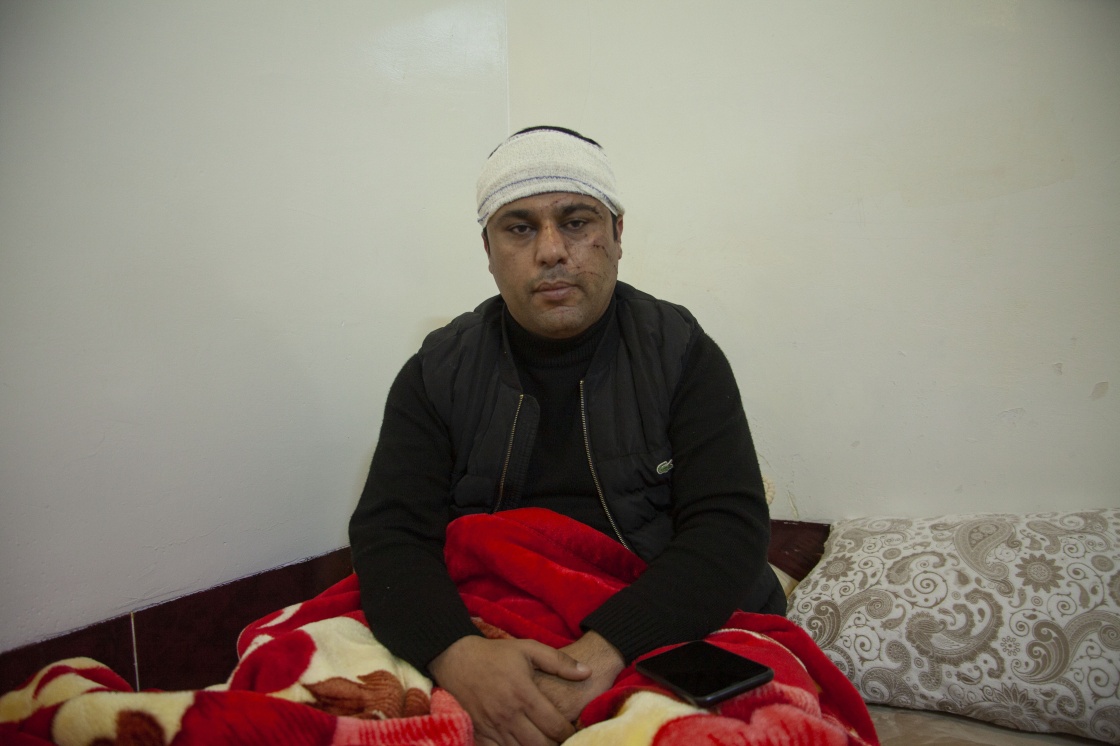 这是3月13日在伊拉克库尔德自治区首府埃尔比勒拍摄的在导弹袭击中受伤的男子。新华社发(达尔沙德摄)