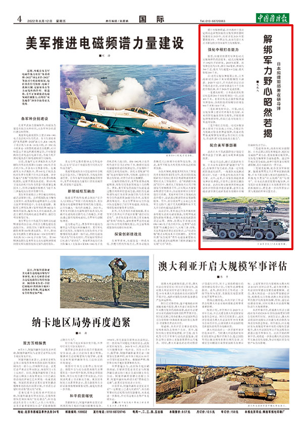 三是随美起舞,配合美国军事部署。随着美军西太平洋军事部署的调整,日本不断加强与美国的战略协作,积极充当美国“印太战略”的“马前卒”。日本此次提前部署反舰导弹,不仅是针对美国要求日本发挥更多作用的积极回应,更是进一步向外界宣示其与美国的军事同盟关系。
