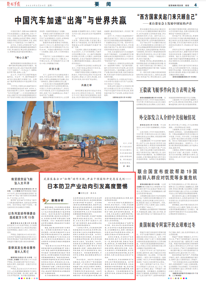 孙文竹表示, 2022年2月俄乌冲突爆发后,日本又修订了“防卫装备转移三原则”,以“共同应对国际秩序受到的威胁”为由,向乌克兰提供了防弹衣、头盔等装备,为今后进一步以类似形式干预国际冲突开启恶劣先例。2022年年底日本修订《国家安全保障战略》,开始探讨进一步扩大武器出口范围,向部分签订合作协议的国家出口导弹、战斗机等致命性武器。