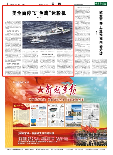 美全面停飞“鱼鹰”运输机