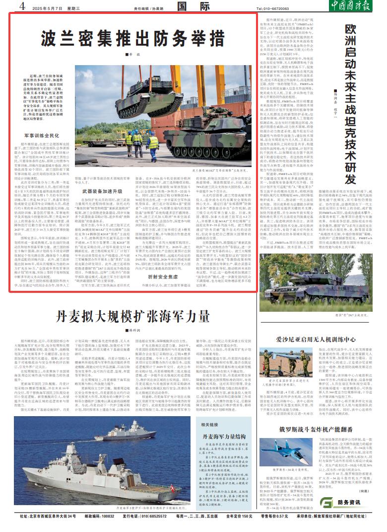 陆军方面,今年2月,波兰陆军正式接收28辆美制M1A2“艾布拉姆斯”主战坦克和14辆韩国K2GF“黑豹”主战坦克。3月,波韩两国外长就军品出口展开磋商,4月双方签署第二批K2GF“黑豹”坦克采购合同,计划年底前交付82辆新坦克。波兰格坦斯克军工厂计划下半年启动该型坦克生产线建设,并与波兰军械集团合作开展本土版“黑豹”主战坦克联合研发项目。此外,波兰还将持续推进德制“豹”2A7主战坦克升级改造项目。外媒指出,这种“三线并行”的装甲部队建设模式,是波兰军方打造所谓“欧洲最强陆军”的主要举措。