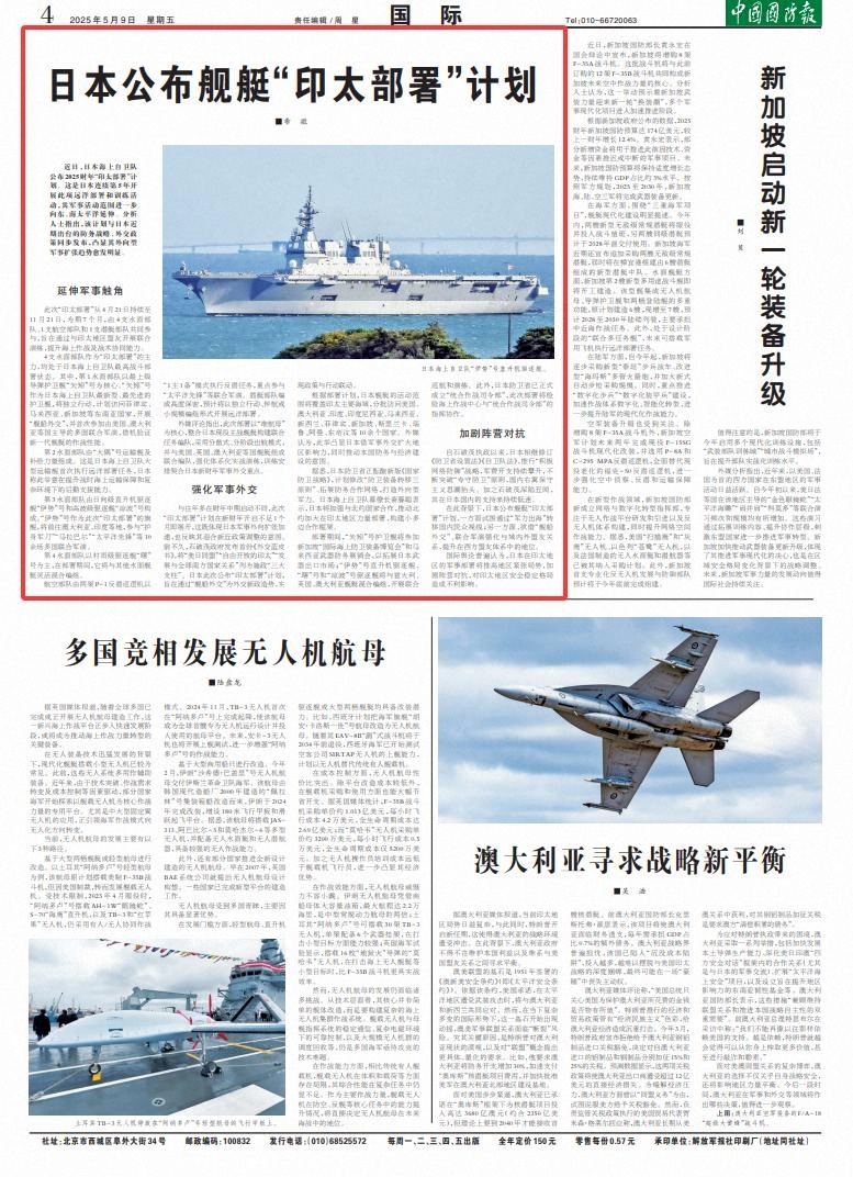 近日,日本海上自卫队公布2025财年“印太部署”计划。这是日本连续第5年开展此项远洋部署和训练活动,其军事活动范围进一步向东、南太平洋延伸。分析人士指出,该计划与日本近期出台的防务战略、外交政策同步发布,凸显其外向型军事扩张趋势愈发明显。