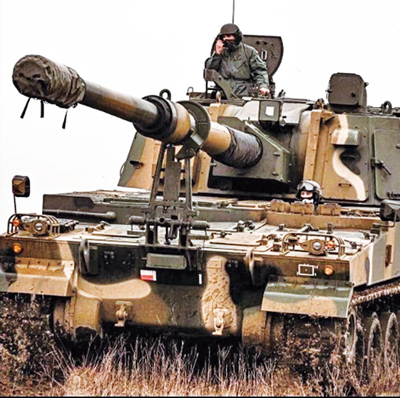 K9自行榴弹炮由韩国三星造船与重工业公司研制,为履带式设计,同样采用155毫米口径、52倍径身管,配备自动装填系统和先进火控系统,可发射北约制式全系列155毫米弹药,包括杀伤爆破弹、底排弹等多种类型。炮塔内最多可携带48发炮弹,最大射速达每分钟6发,最大射程约40千米。