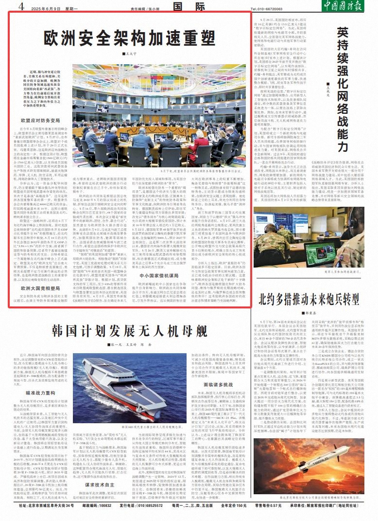 “脱欧”的英国则加速“借势”重新入局欧洲大陆防务。相较推动“脱欧”的保守党,英国工党政府处理对欧关系无历史包袱,可放手调整政策。5月19日,英国“脱欧”5年来的首次英国—欧盟峰会在伦敦举行,欧盟同意英国参与“欧洲再武装”贷款计划。根据计划,获贷款支持的军工项目,至少65%的零部件须来自欧盟或欧盟候选国、潜在候选国及与欧盟签署安全防务协议的国家,英国即身居其列。6月2日,英国发布新版《战略防务评估》报告,旨在确定未来几年国防优先投入领域和事项,为英国分担乃至深度插手欧洲防务“背书”。