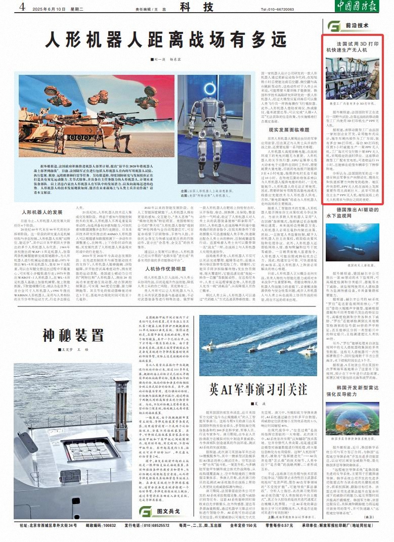 据外媒报道,法国国防军正在进行一项野外试验,在靠近战场的移动微型工厂内使用3D打印机生产FPV无人机。