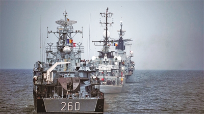 罗马尼亚海军在黑海组织演习。