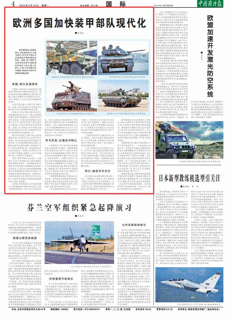 值得注意的是,在欧洲国家推进装甲部队现代化进程中,除法国、德国、英国等传统军事强国的军工巨头深度参与外,希腊、罗马尼亚、爱沙尼亚等国军工企业的参与度也越来越高。此举或将有助于欧洲国家进一步夯实军工根基,为欧洲防务自主提供助力。