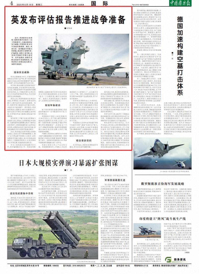 作为工党执政后首份战略评估文件,报告编制耗时近1年。英国首相斯塔默称,《战略防御评估报告》是英国未来10年防务建设路线图,旨在让英国“成为一个全副武装、随时应战的国家”。他表示,英国军队将进入“备战状态”,全面强化各领域军备建设。