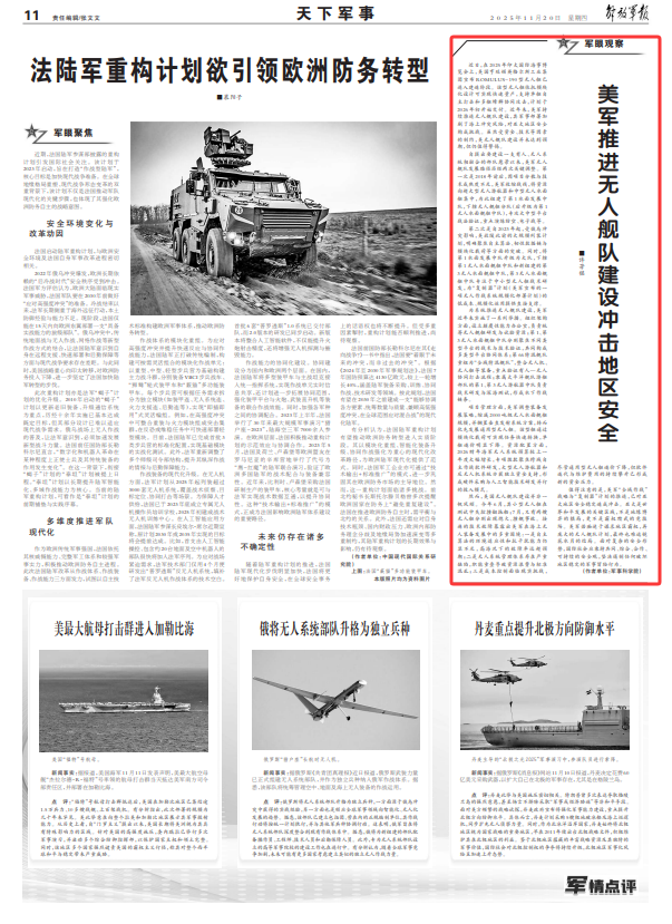 值得注意的是,美军“全域作战”战略与“复制器”计划的推进,已对亚太地区安全稳定造成冲击。亚太是世界和平发展的关键区域,不是地缘博弈的棋局,更不是霸权黩武的竞技场。美军若痴迷于谋求地区霸权,再庞大的无人舰队计划,最终也难逃镜花水月的结局。面对复杂的安全形势,国际社会应秉持共同、综合、合作、可持续的安全观,坚决遏制任何破坏地区稳定的军事冒险行为。