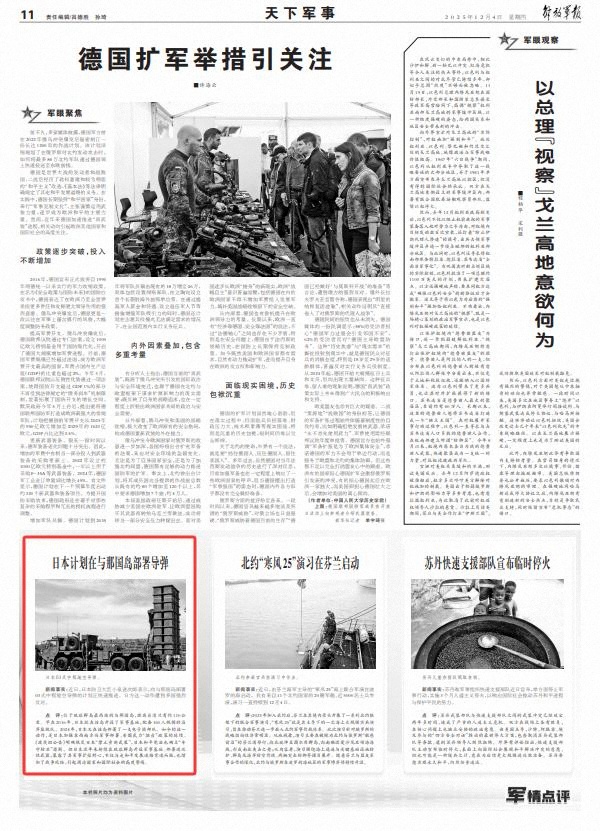 点 评:位于琉球群岛最西端的与那国岛,距离台湾只有约110公里。早在2016年,日本就在该岛开设了军事基地,配备160人规模的沿岸监视队。2024年,日本又在该岛部署了一支电子战部队。如今的这一动作,是日本加强在西南方向军事部署、妄图武力“挺台”政策的延续。《波茨坦公告》明确规定日本“禁止重新武装”,日本和平宪法也确立“专守防卫”原则。但日本近年来持续在琉球群岛开设军事基地、部署进攻性武器,暴露了其军事扩张野心,不仅与走和平发展道路背道而驰,也增加了战争风险,引起周边国家和国际社会的高度警惕。