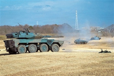 日本自卫队装甲车进行射击训练。