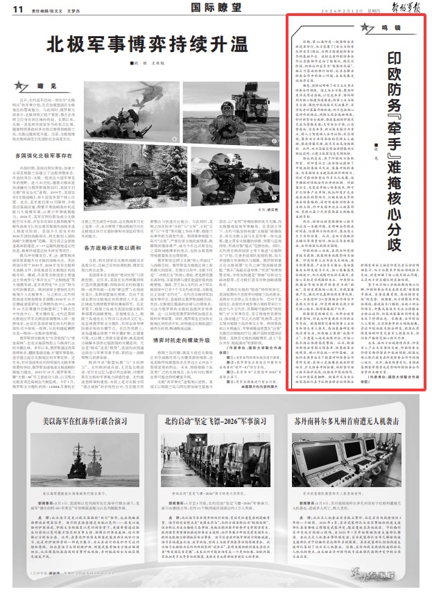 鉴于双方核心分歧短期内难以化解,印欧防务合作未来将呈现“框架稳步推进、实质进展有限、高端持续受阻”的态势。短期看,双方将聚焦中低端领域,推进技术门槛低、分歧小的合作项目,开展浅层技术交流与情报安全协议谈判,但高端装备协同研发基本处于停滞状态。长期看,合作将向人工智能、太空防务等新兴领域拓展,尝试中低端技术联合研发,欧盟或有限度协助印度完善军工配套体系,但仍会严格防范核心技术外泄。