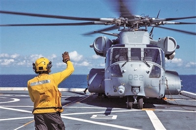 美军CH-53运输直升机参加在拉美地区的军事演习。