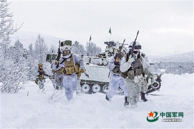 意大利海军陆战队在挪威演练寒区两栖突击。