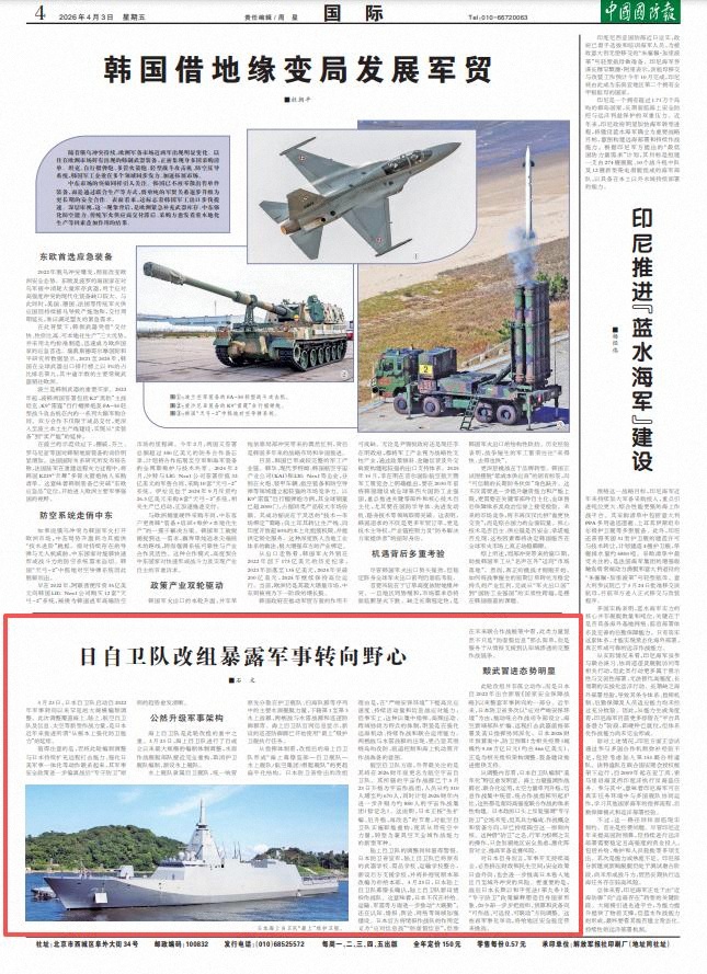 值得注意的是,若将此轮编制调整与日本持续扩充远程打击能力、强化日美军事一体化等动作联系起来,其军事安全政策进一步偏离战后“专守防卫”原则的趋势愈发清晰。