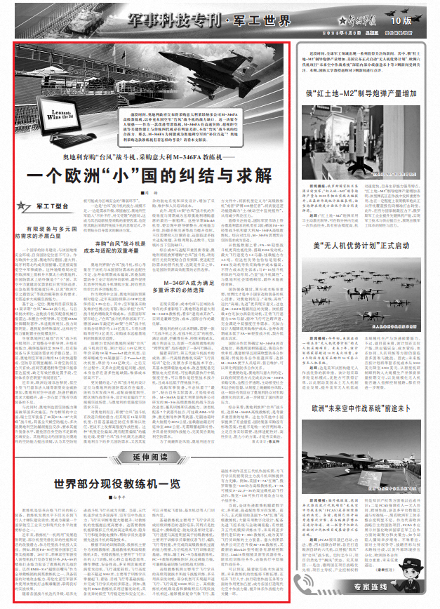 综合来看,奥地利放弃“台风”战斗机、选择M-346FA高级教练机,是考量多重因素的结果。这也为其他中小国家提供了有益借鉴,国防装备采购没有标准答案,性能不是唯一的评判标准,立足自身实际需要,选择适配性好、高性价比、阻力小的方案,才是务实做法。