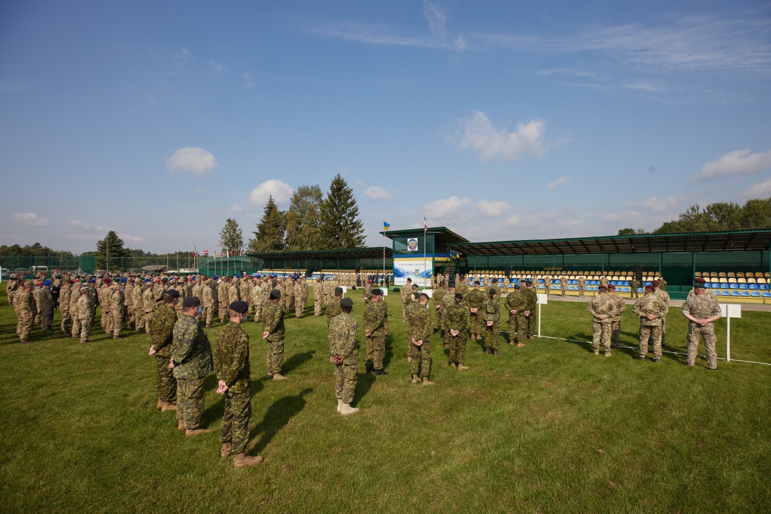 9月17日,来自乌克兰、美国、英国等国的军人参加在乌克兰西部利沃夫州举行的代号为“快速三叉戟-2020”的多国联合军事演习开幕式。新华社发