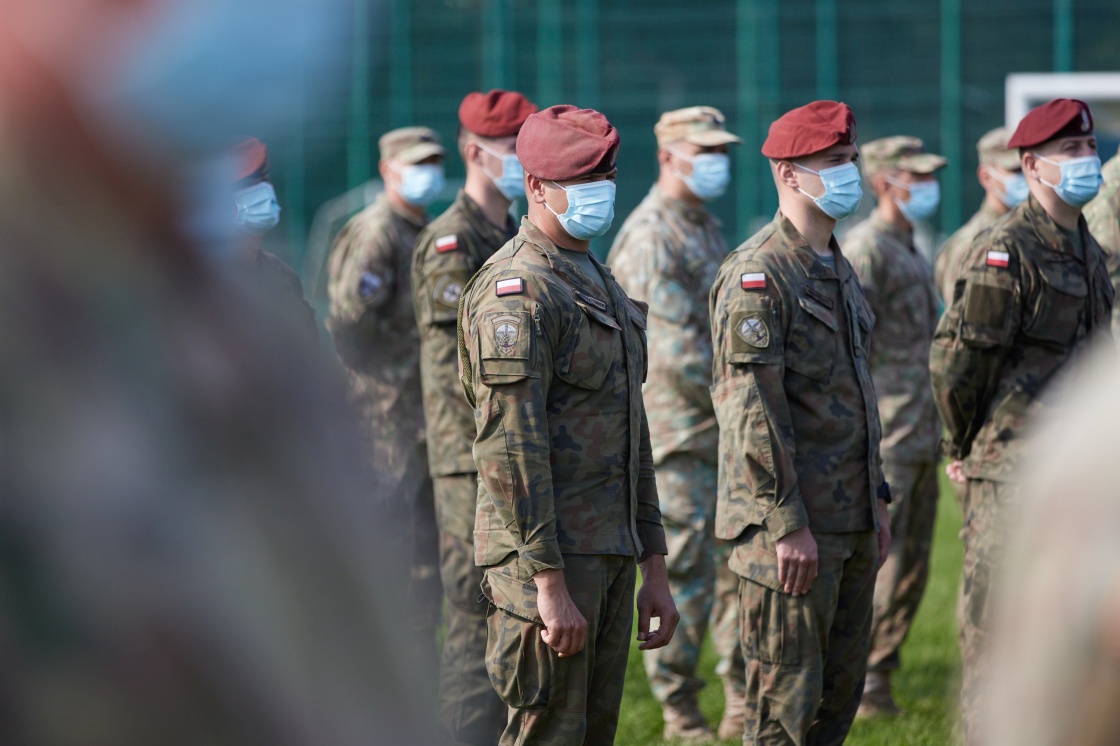 9月17日,士兵参加在乌克兰西部利沃夫州举行的代号为“快速三叉戟-2020”的多国联合军事演习开幕式。新华社/路透