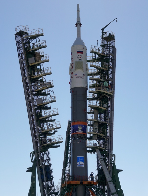 6月4日,在哈萨克斯坦拜科努尔发射场,俄罗斯“联盟MS-09”飞船被装上发射台。新华社/路透
