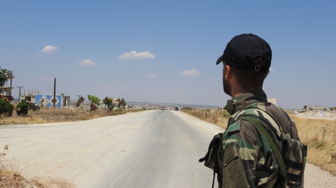 8月22日,在叙利亚哈马省北部苏兰地区,一名叙政府军士兵在人道走廊附近警戒。新华社发