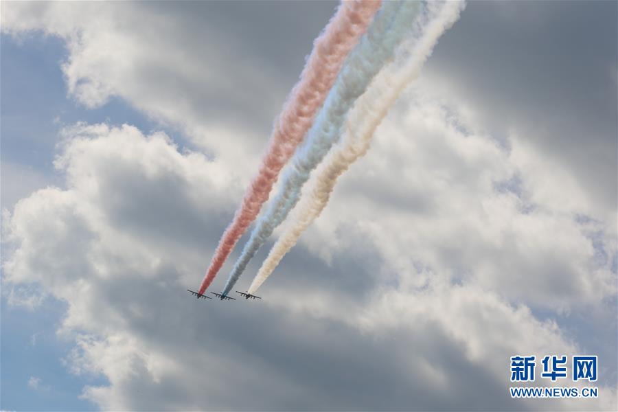 8月23日,俄罗斯战机飞过“爱国者”公园上空。新华社记者 田定宇 摄