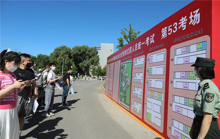 北部战区总医院受领组考任务后,及时总结往年组考工作的经验做法,结合今年考试教学楼分散的特点,制作了大型宣传展板,将疫情防控要求、考生考室号、路线图等内容清楚的展示给考生;设置三条查验通道分别对考生行程码、体温、身份进行逐一核查;设置准考证打印室,因个人原因忘带准考证的考生可以凭身份证信息与考务移动平台核对后打印,切实做到在考场工作的组织上从服务考生、方便考生、保护考生。整场考试秩序井然,考风考纪良好,工作人员军容严整,展现出了联勤保障部队的优良作风,获得了广大考生的一致赞誉。