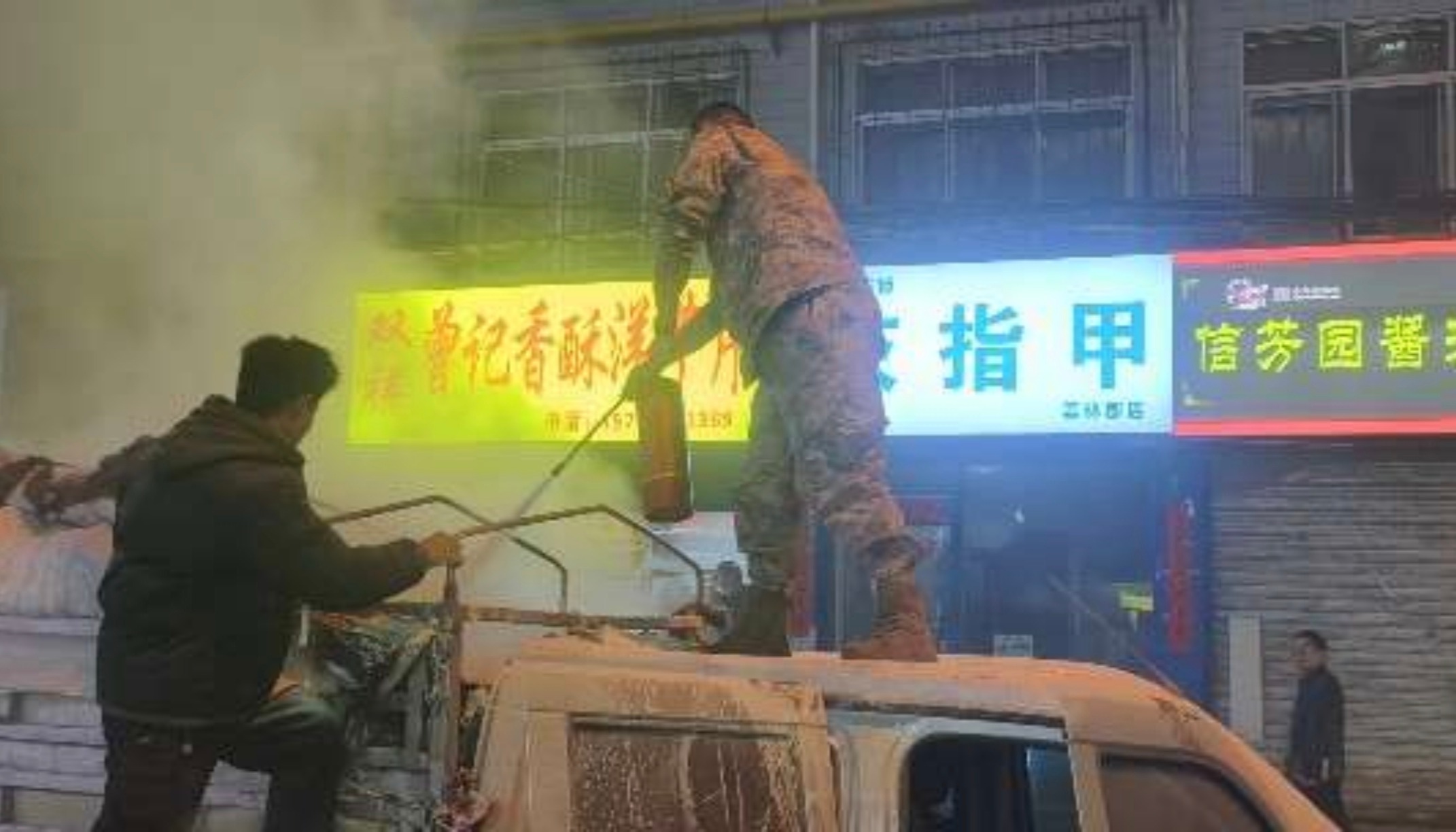 发现火情后,张祖涛立即向周边商铺借来灭火器,并组织现场群众合力扑救,车辆外部明火很快被成功压制。就在排查现场隐患时,车厢内部突然复燃,火苗再次窜起。张祖涛果断爬上车厢顶部,对准火源根部连续喷射,彻底扑灭复燃火焰。
