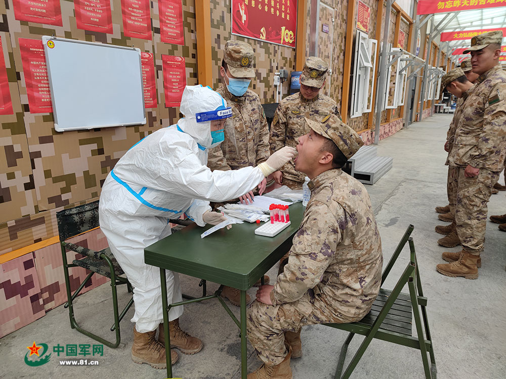 董莉红为部队官兵采集核酸样本。张久聪 摄